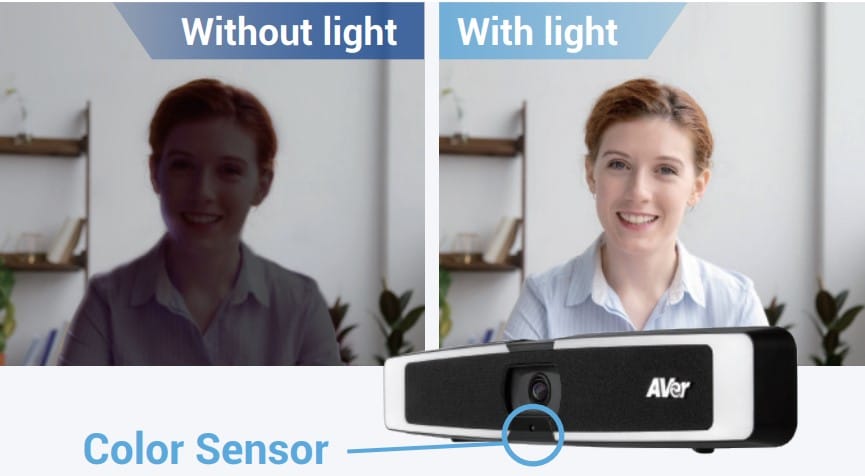 Một trong những điểm mạnh của camera Aver VB130 là tích hợp đèn chiếu sáng thông minh. Hỗ trợ người dùng điều chỉnh ánh sáng tự động trong nhiều môi trường khác nhau ở nhiệt độ 2700- 5700K. Và có thể điều chỉnh qua 5 cấp độ, đảm bảo chất lượng hình ảnh hiển thị một cách tối ưu và chuyên nghiệp nhất.