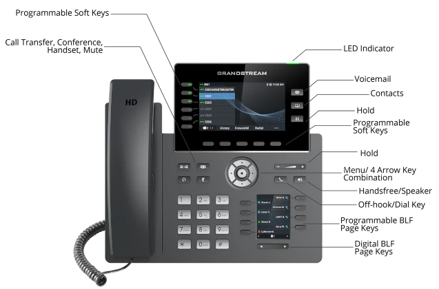 Sở hữu thiết kế hiện đại với màn hình LCD màu 4.3 inch và màn hình phụ 2.4 inch. GRP2616 mang đến cho người dùng giao diện trực quan và dễ sử dụng. Với tính năng tấm mặt có thể hoán đổi cho phép doanh nghiệp tùy chỉnh logo để tăng độ nhận diện thương hiệu. Điện thoại GRP2616 còn tích hợp với hệ thống quản lý thiết bị Grandstream (GDMS), hỗ trợ quá trình cài đặt, giám sát và vận hành trở nên nhanh chóng và đơn giản hơn. Rất thích hợp với các doanh nghiệp có quy mô vừa và lớn.