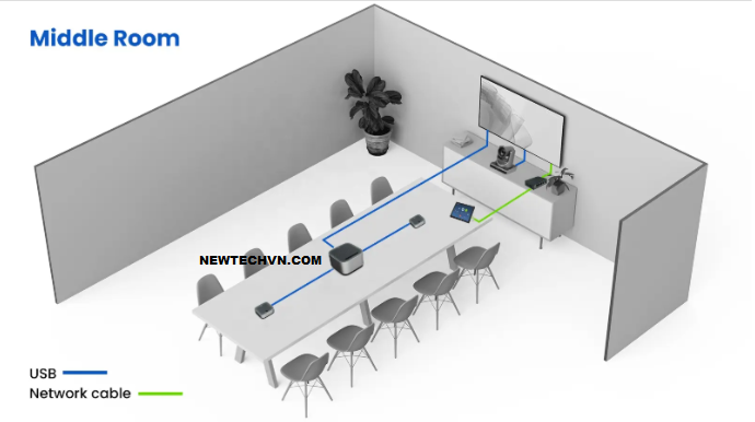 Làm Việc Hybrid: Thiết bị hỗ trợ mô hình làm việc hybrid giúp kết nối nhân viên tại văn phòng và từ xa. Từ đó đảm bảo giao tiếp liền mạch trong các buổi họp nhóm hoặc brainstorming.