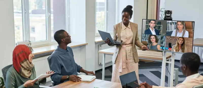 Phòng họp doanh nghiệp: Rocware VX60WB hỗ trợ tổ chức các cuộc họp trực tuyến mượt mà. Kết nối các đội nhóm ở nhiều địa điểm khác nhau, đảm bảo giao tiếp hiệu quả và liền mạch.